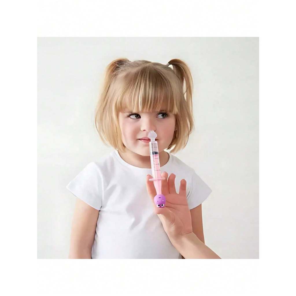 Modo usar: Adicione de 5 a 10 ml de soro fisiológico em temperatura ambiente na seringa. Com o bebê sentado e o tronco ligeiramente inclinado para a frente, introduza suavemente a ponteira de silicone na narina e aplique o líquido, que entra por um lado e é drenado pelo outro. Agora o seu bebê pode respirar aliviado!